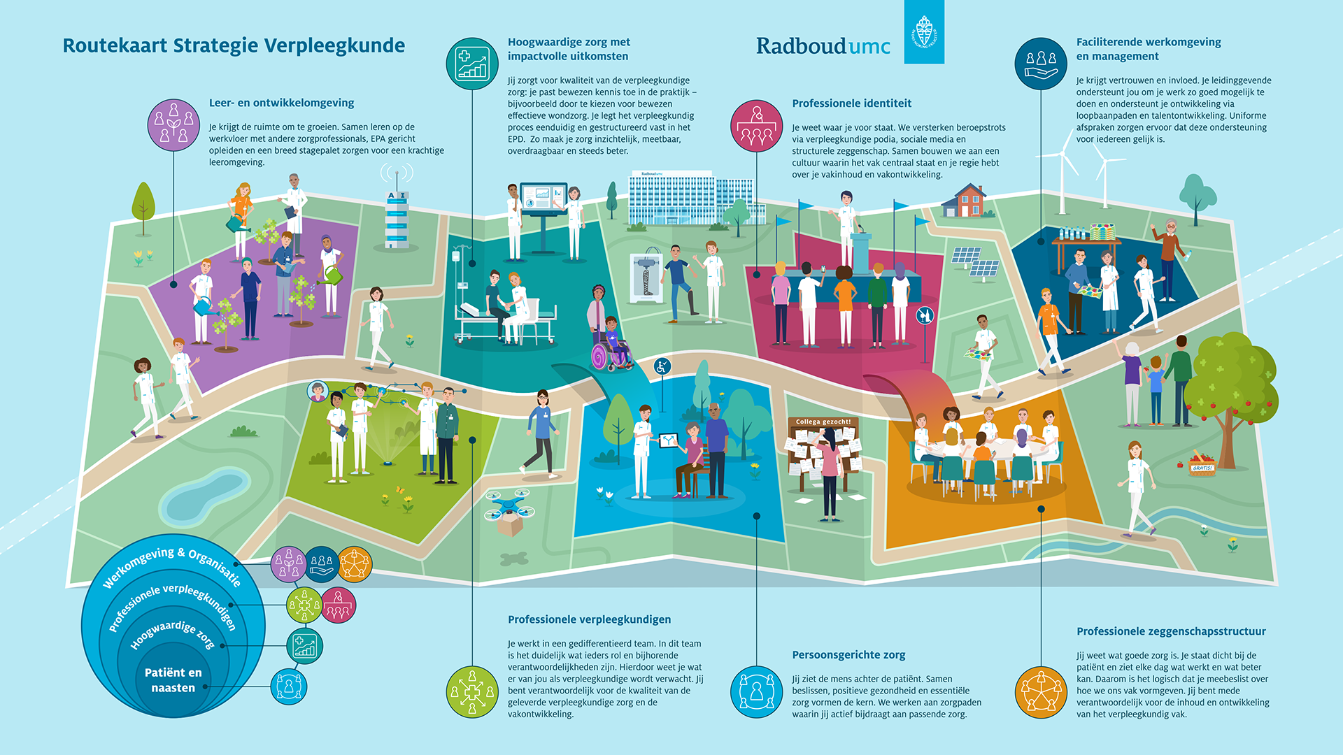 Voor alle verpleegkundigen en hun leidinggevenden binnen het Radboudumc is een praatplaat ontwikkeld over de verpleegkundige strategie voor de komende jaren.